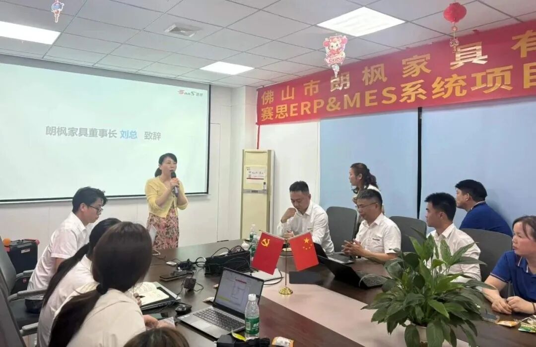 会上,朗枫家具董事长刘总率先致辞,她指出,朗枫家具经过对多家行业软件服务商的深度调研与审慎评估,终选择与赛思软件达成战略合作,共同启动ERP&MES一体化系统项目。